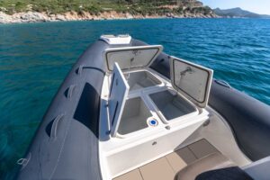 Nuestro barco BSC 10 Elegance es el modelo ideal para disfrutar del mar, barco potente y ágil, equipa un motor de 150Hp. A partir de 2025 trabajamos con la prestigiosa marca italiana BSC Colzani, uno de los mejores fabricantes de semirrígidas a nivel mundial. El barco dispone de un acabado Elegance súper deportivo y de un amplio espacio en cubierta, además de un gran solárium en proa y también en popa, con mesa para comer.